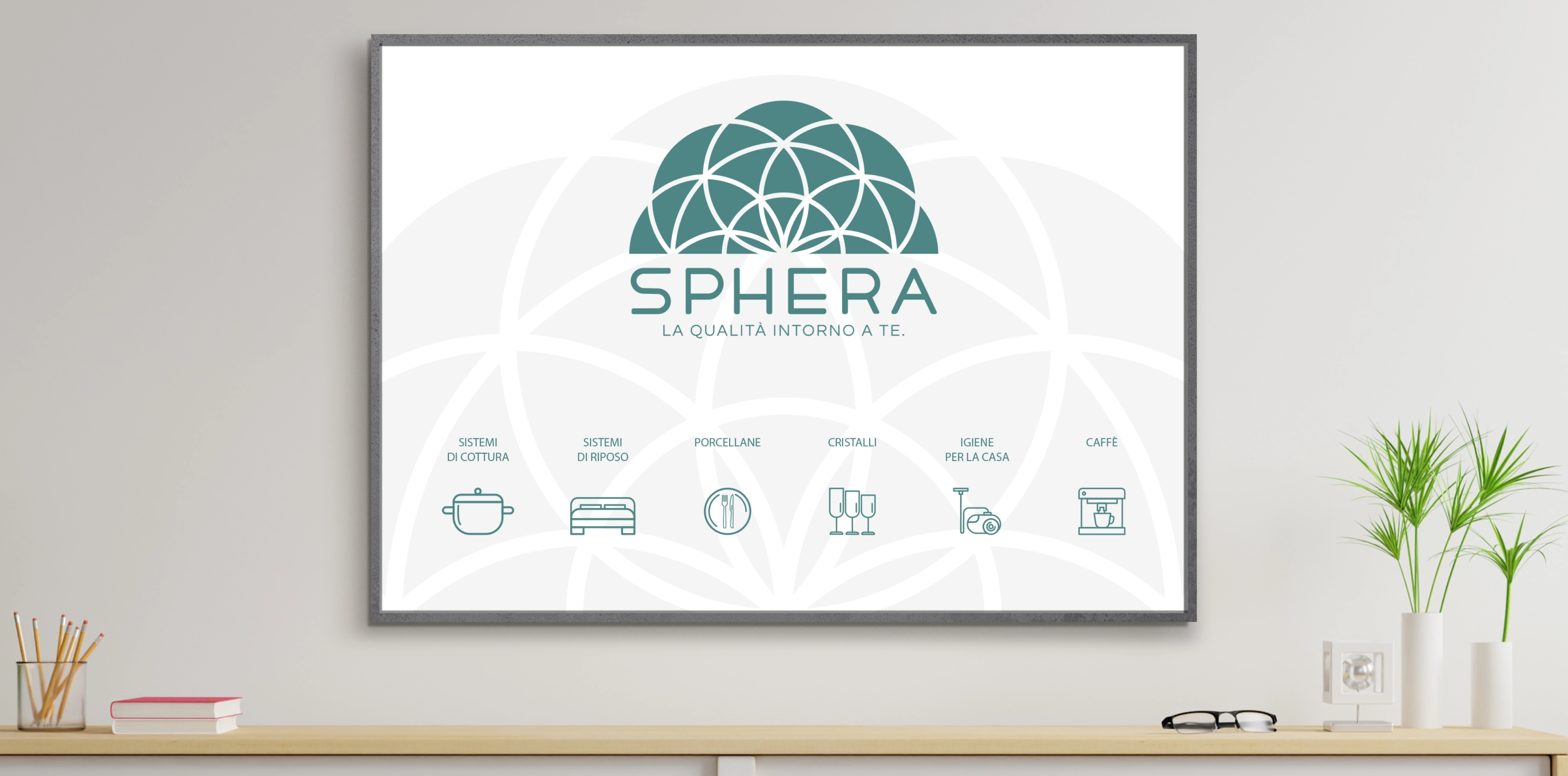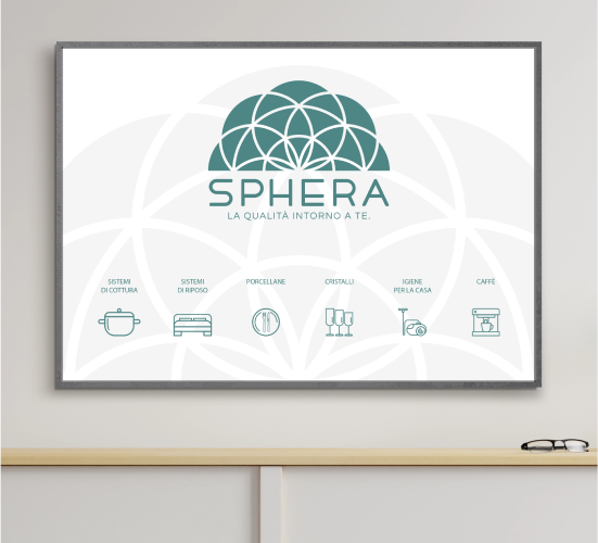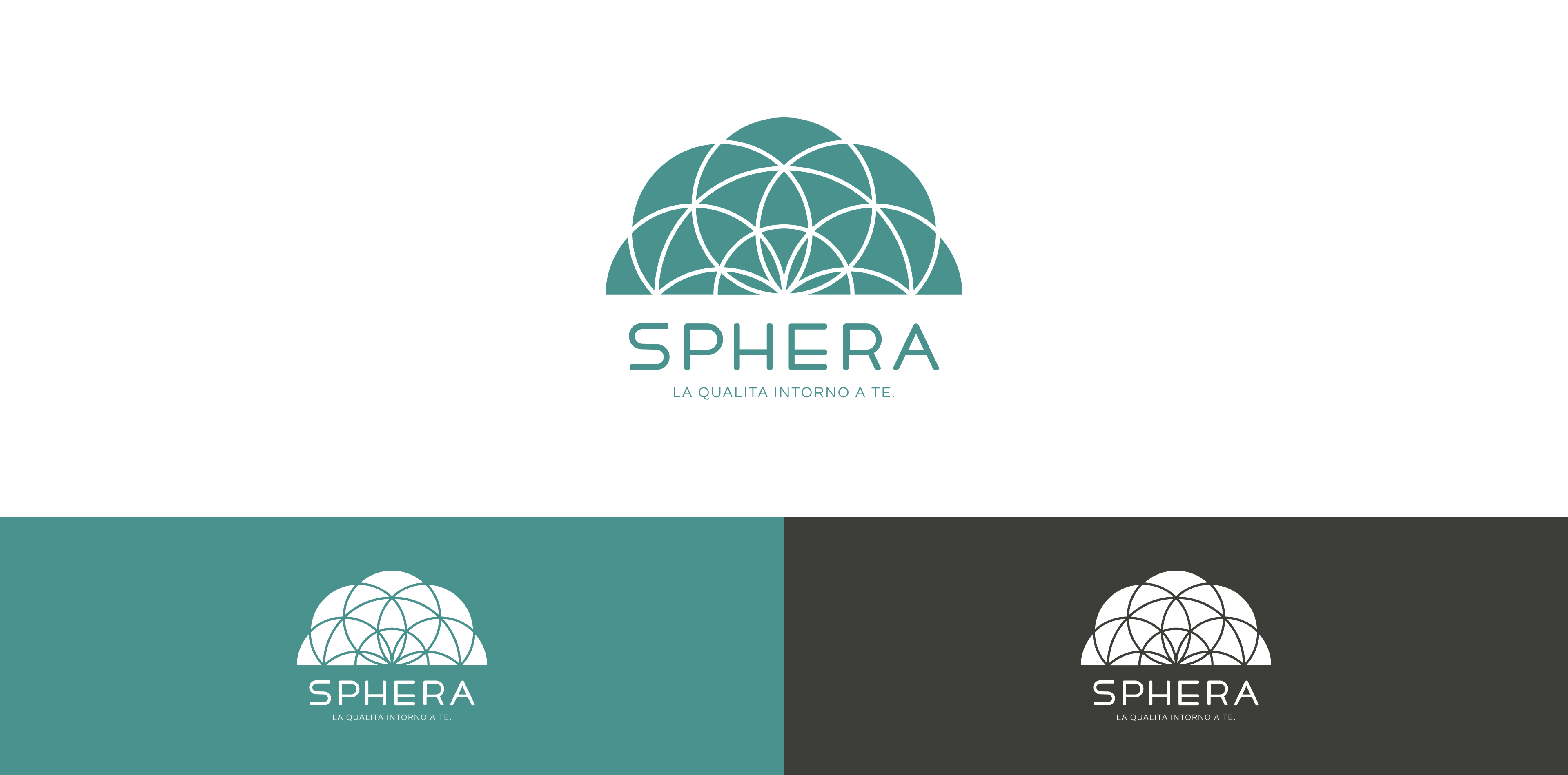 Il logo Sphera nasce dalla purezza della figura geometrica della sfera, riletta come un taglio di pietra preziosa: segno di valore e durabilità. L’apertura inferiore richiama la casa, fulcro intorno a cui si sviluppa l’intera identità. Le linee circolari trasmettono armonia e completezza, traducendo la promessa del payoff “La qualità intorno a te” in un segno immediatamente riconoscibile.