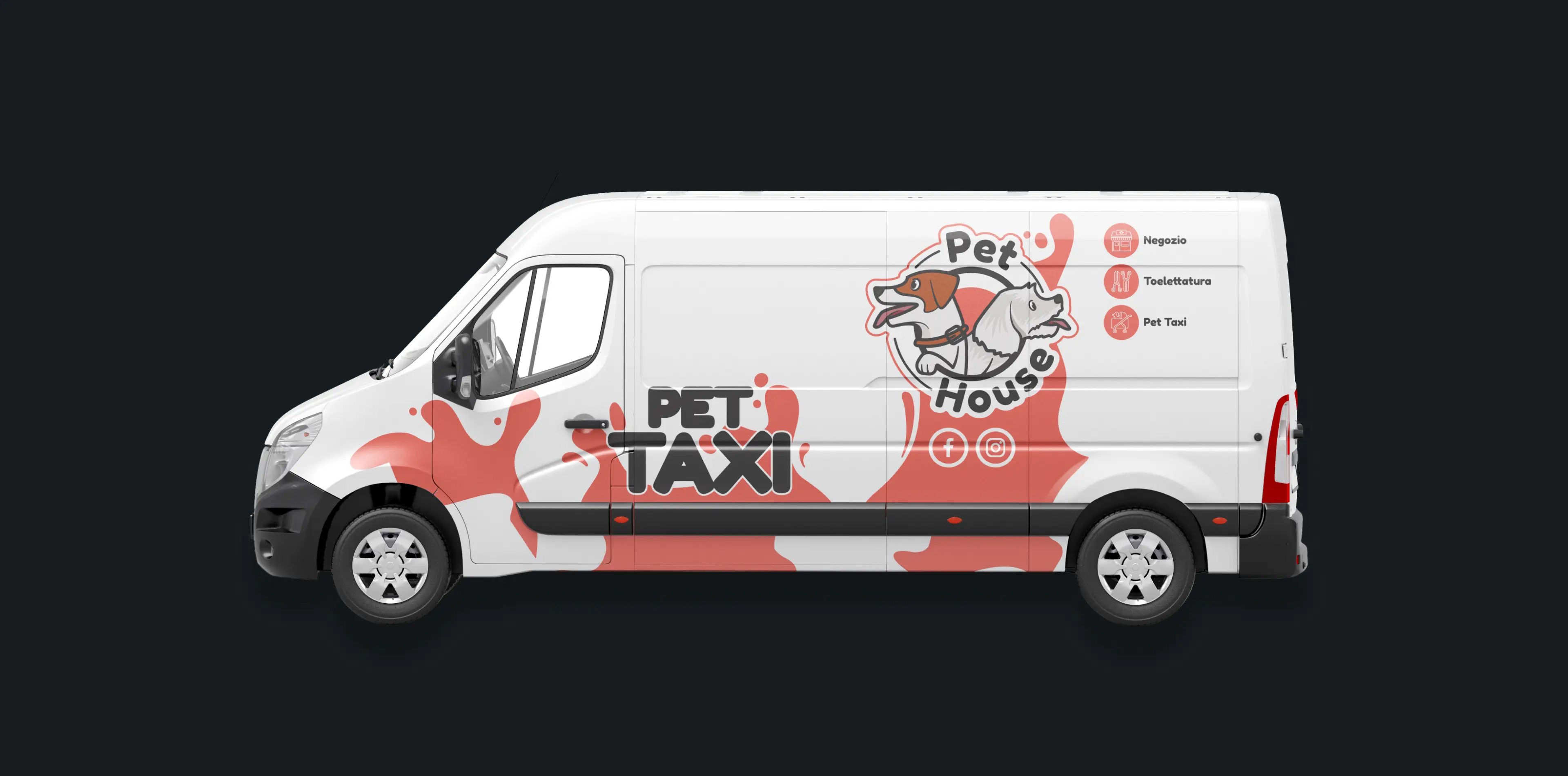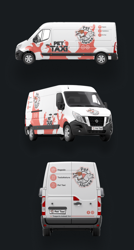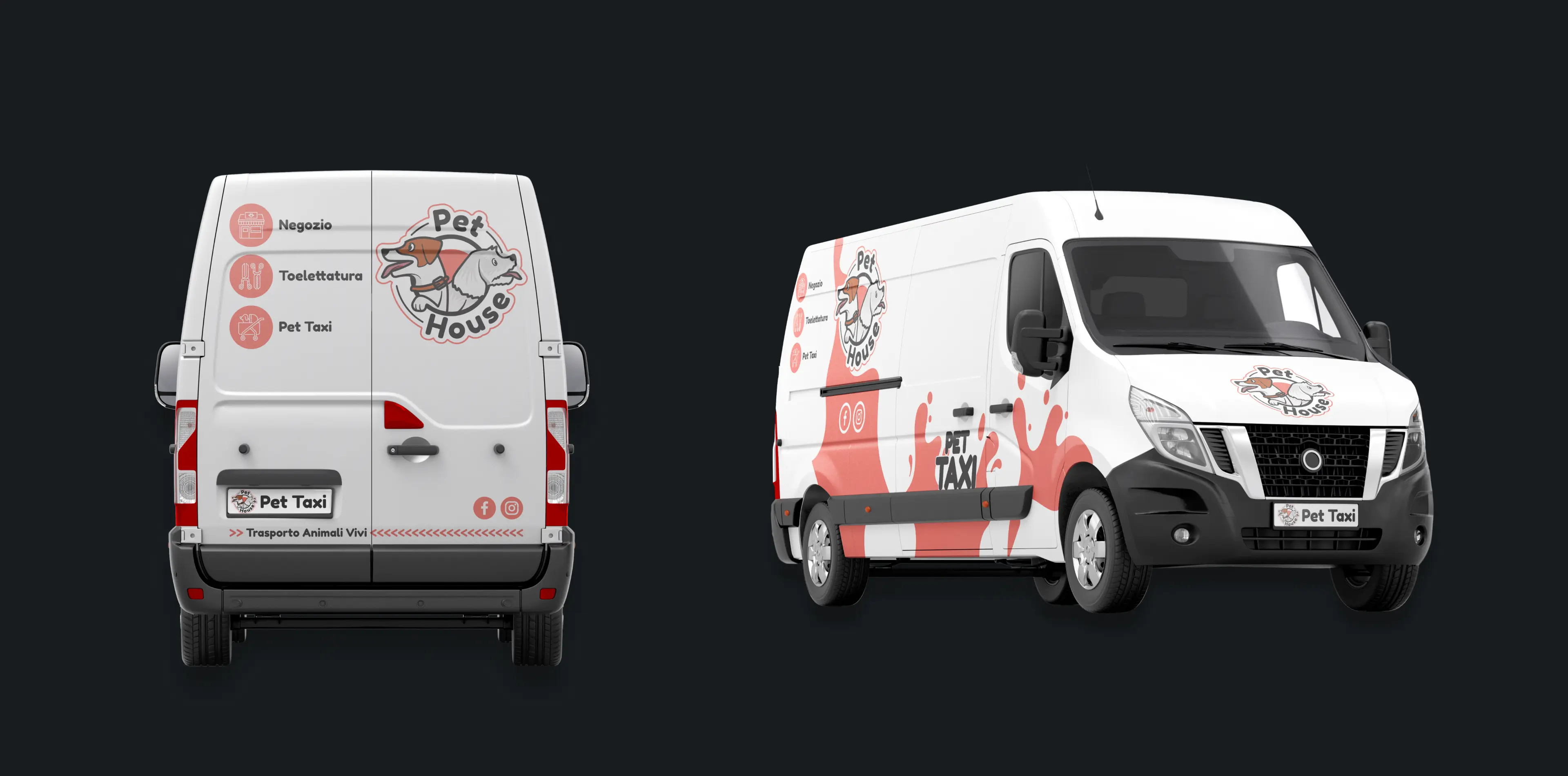 Pet House presents itself through a coordinated suite of materials designed to reinforce its commitment to care and quality. Vouchers become meaningful, tangible gifts. Signage and stickers define the store environment with consistent visual cues, while business cards combine elegance with simplicity. The branded van extends visibility beyond the store, transforming into a moving ambassador of the Pet House spirit.