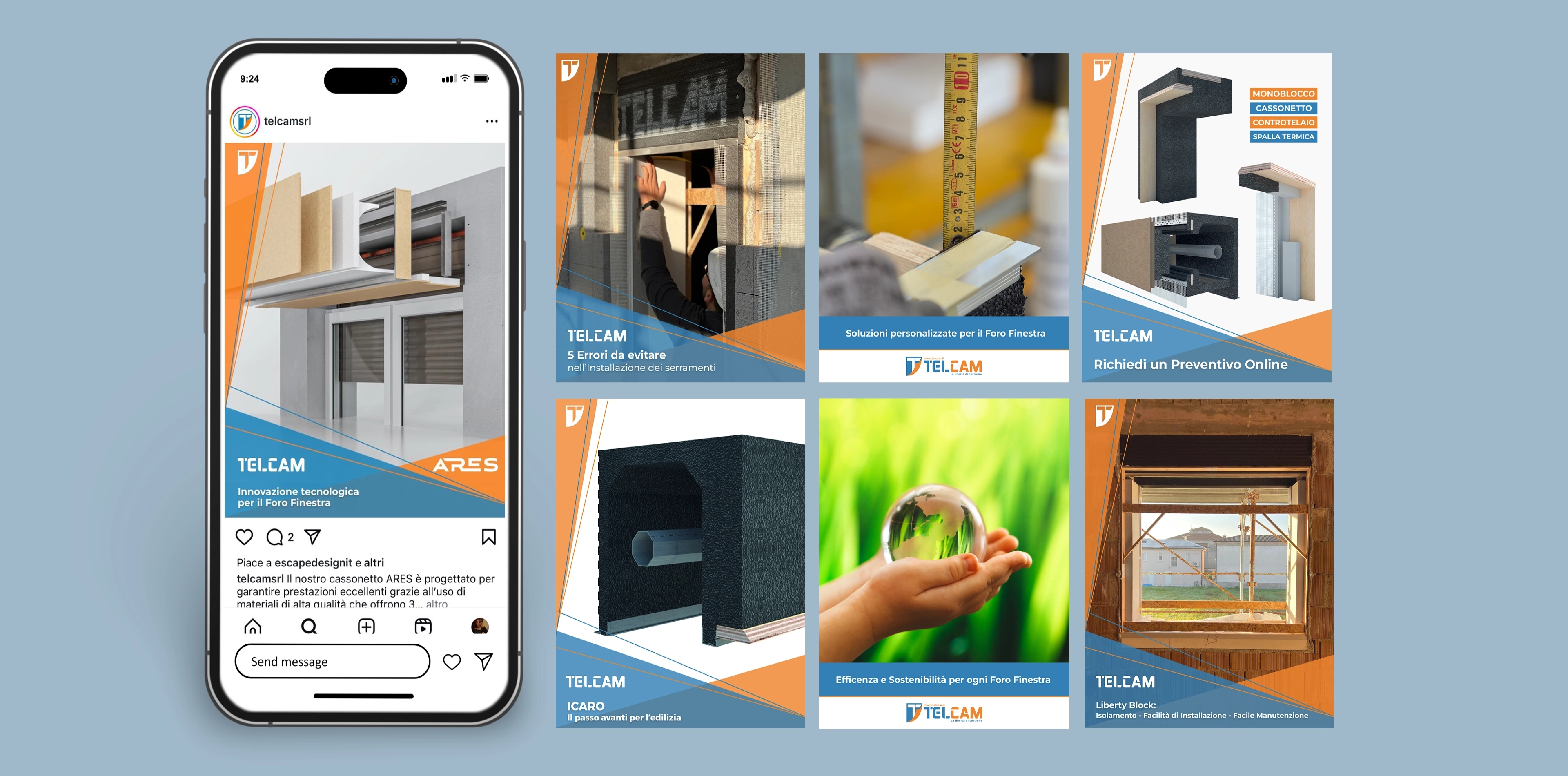 The video production strategy highlights Telcam’s products in dynamic and immersive ways. 3D product videos illustrate installation processes with realistic renderings and interactive visualizations. Video shoots on-site showcase real applications, details, and construction contexts through sharp and evocative editing. Complementing these, the professional photo service delivers high-resolution imagery focused on technical details, textures, and finishes - valuable assets for the website, catalogues, and brochures, enhancing the brand’s reputation for precision and structural reliability.