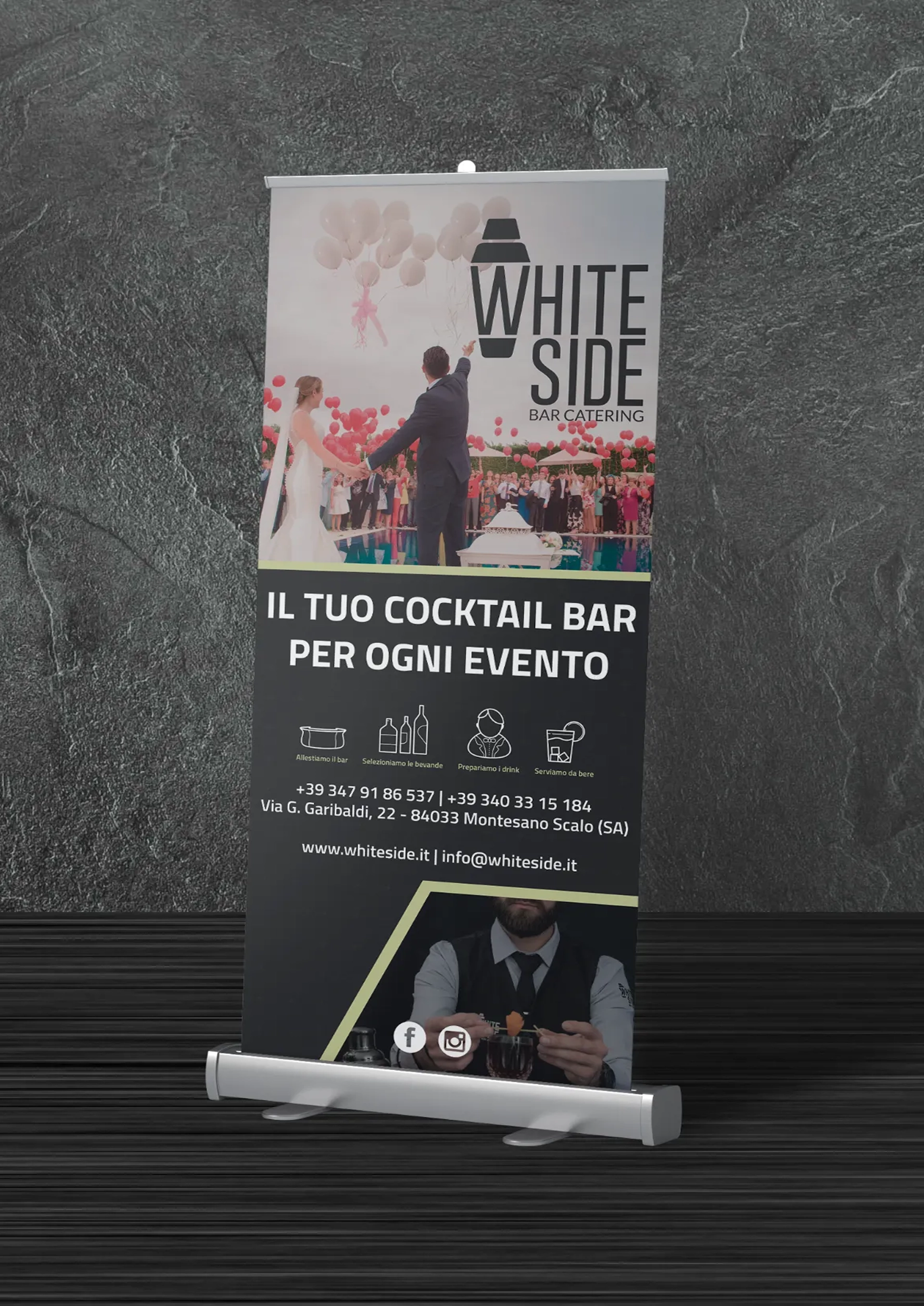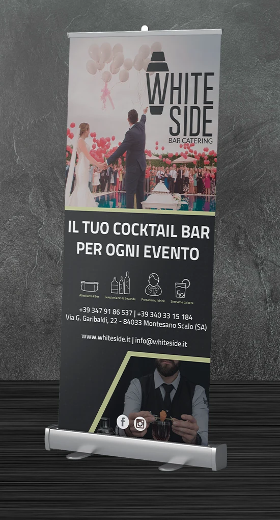 We designed a full vehicle wrap and roll-up banners to enhance brand visibility during events and on the move. The visual design is bold and memorable, ensuring White Side Bar Catering is recognizable wherever it goes—amplifying its presence and impact across every setting.